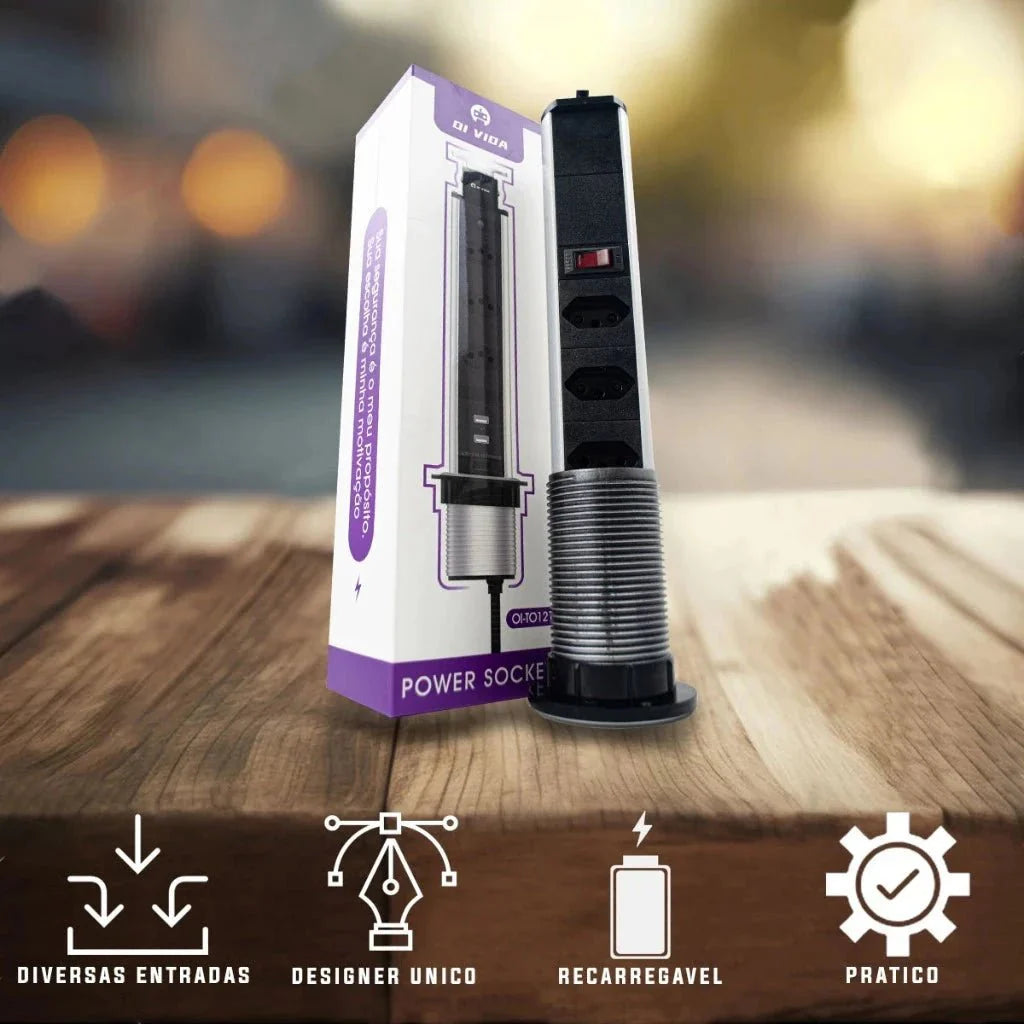 ⚡ TORRE DE TOMA RETRÁCTIL CON USB – ¡ENERGÍA Y ORGANIZACIÓN EN TU MESA!